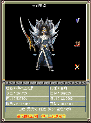 心情开心:表达你此时的心情,不超过3个汉字。可以显示在聊天室的名单上,跟在你的名字后面。不过需要10万银两和一定的内力。